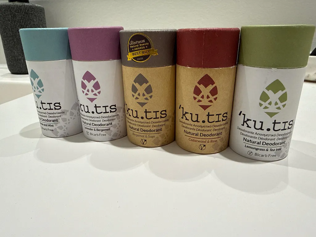 At Kutis Skincare we use only the best ingredients from reputable and ethical suppliers. Our products are handmade in the heart of rural Mid-Wales from mainly organic and always natural ingredients. Our deodorant comes in a 100% biodegradable paperboard push-up tube.
